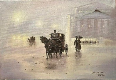"Жизнь города", вольная копия с картины художника Geoffrey Johnson,холст на подрамнике ,масло, 38x55, 2024 Цена 15000 рублей