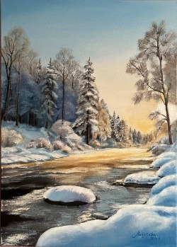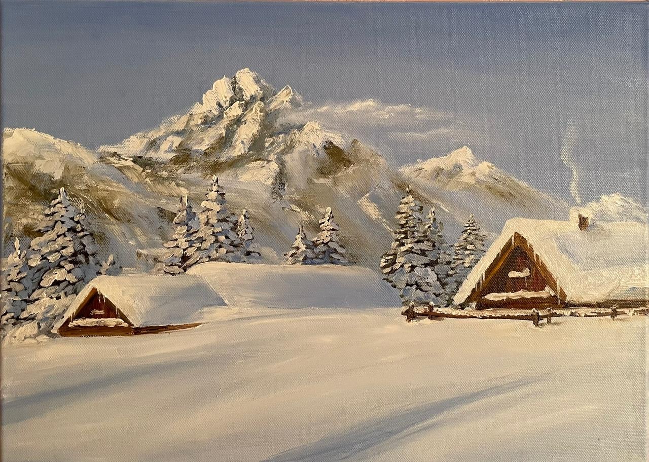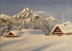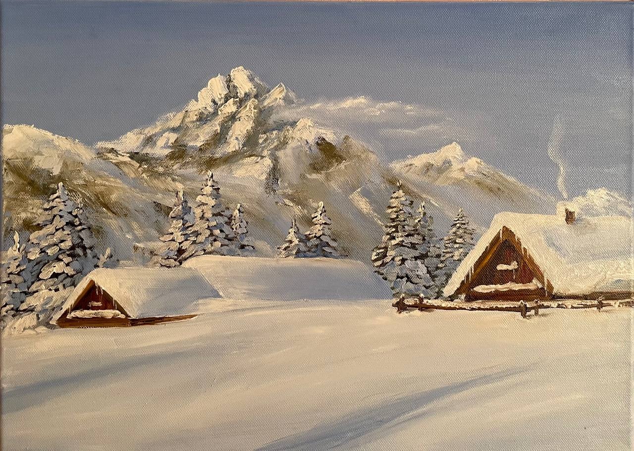 "Зима в горах", по м/к И.Сахарова, холст на подрамнике, масло, 43x38, 2022 Цена ПРОДАНО рублей (возможен повтор) (заказ только через Telegram)