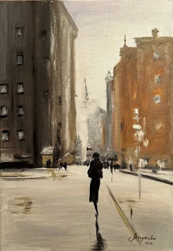 "Жизнь города", вольная копия с картины художника Geoffrey Johnson,холст на подрамнике ,масло, 38x55, 2024 Цена 15000 рублей